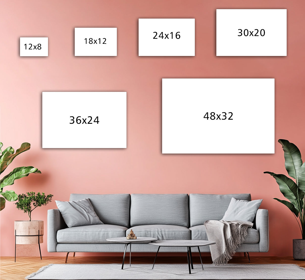 • Canvas Size: 12x8in; 18x12in; 24x16in; 30x20in; 36x24in; 48x32in
