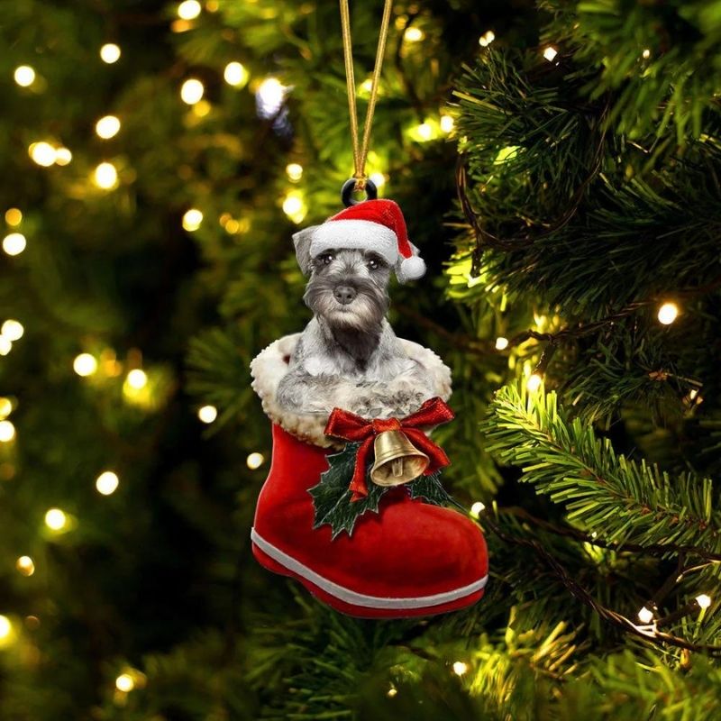 Miniature Schnauzer In Santa Boot Christmas Hanging Ornament SB107