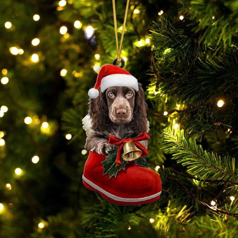 Boykin Spaniel In Santa Boot Christmas Hanging Ornament SB132