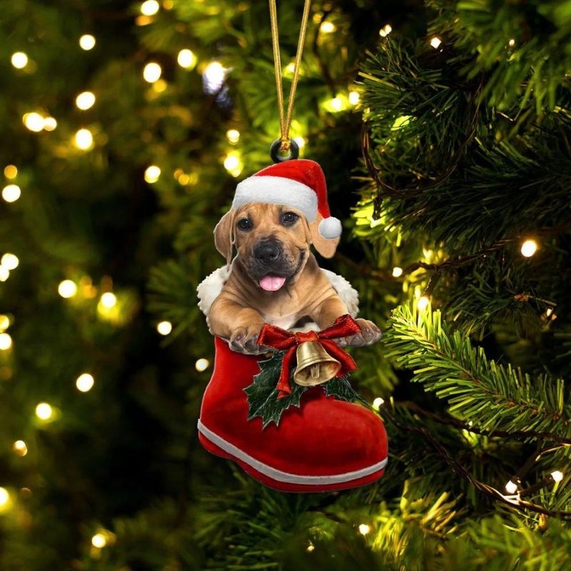 Rhodesian Ridgeback In Santa Boot Christmas Hanging Ornament SB118
