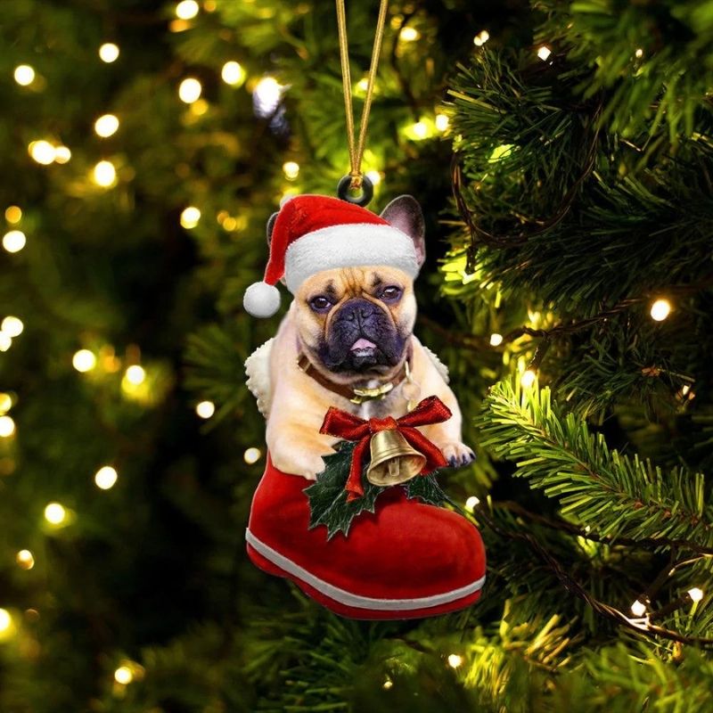 French Bulldog Fawn In Santa Boot Christmas Hanging Ornament SB181